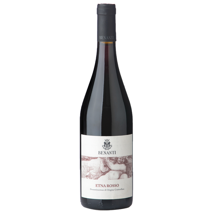 The 2019 Etna Rosso is comprised of Nerello Mascalese (80-85%), the noble indigenous red grape variety of Mount Etna, and Nerello Cappuccio (15-20%), a variety grown on the volcano for centuries. The two varieties are vinified separately. About 80% of the Nerello Mascalese matures in stainless steel, while about 20% matures in oak barriques for 8-10 months. Nerello Cappuccio matures exclusivelyin stainless steel. Pale ruby in color, the nose is ethereal and intense with hints of red fruits. Balanced, dry, medium-bodied, the palate mineral with a pleasant acidity and saline notes and persistent red fruit aromas.Benanti