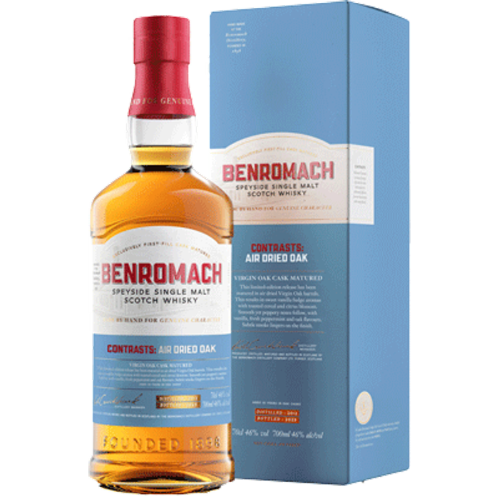 This limited-edition release has been matured in air dried Virgin Oak barrels. This results in sweet vanilla fudge aromas with toasted cereal and citrus blossom. Smooth yet peppery notes follow, with vanilla, fresh peppermint and oak flavours. Subtle smoke lingers on the finish.Benromach