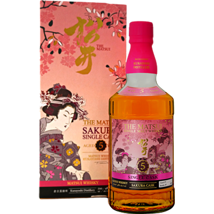 The 5-year-old single cask expression is rested full term in Sakura Casks which imparts a wonderful floral composition of cherry blossoms. The nose open with scents of mint and a background of plum and dark cherries. Cedar chest and incense round out the aromatic profile. The palate opens with chocolate covered cherries, fruit notes and the sweetness and depth of the malted barley. The finish is robust and complex. The chocolate notes linger enhanced with cherry blossom and orange zest with citrus brightness. Non chill filtering makes this finish long and delightful.Matsui