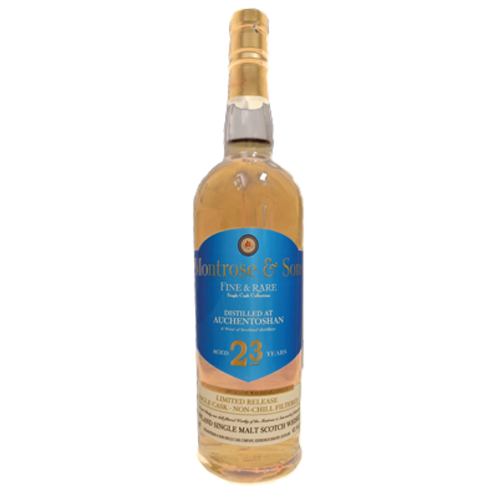 Smooth and delicate floral hints come forth by the unique triple distillation method hence delivering a clean nose of dry fruits and lightly baked tones. The initial taste is massively sweet which opens further to Highland barley fields and nutty notes. A delicious coming together of Scottish flavors with a finish of more spice and honey.Montrose & Sons