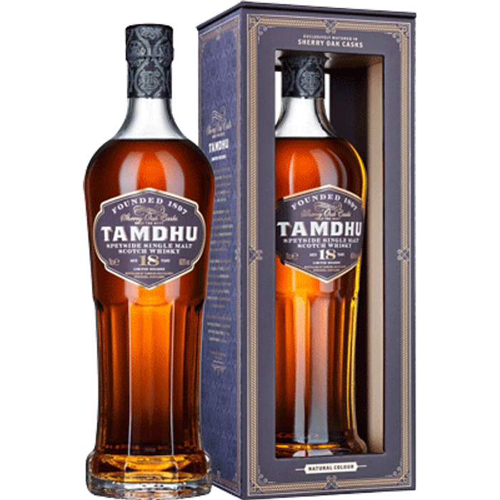Tamdhu only matures in the finest Oloroso Seasoned Sherry Casks sourced from Spain, so when a small selection of these fine casks came of age, the time was right for the distillery to bring them together to craft a very limited 18-Year-Old release. This scarce wood bears two great gifts: colour and taste. Tamdhu 18 Year Old’s deep copper hue is developed by the cask, nothing more – and each drop owes its rich, complex taste to its home of over a decade and a half. Dry nutty sherry, milk chocolate, rum raisin, citrus and plum. A deep copper hue and un-chill filtered delight awaits the Speyside single malt sherry wood connoisseur. Worth the 18 years wait.Tamdhu