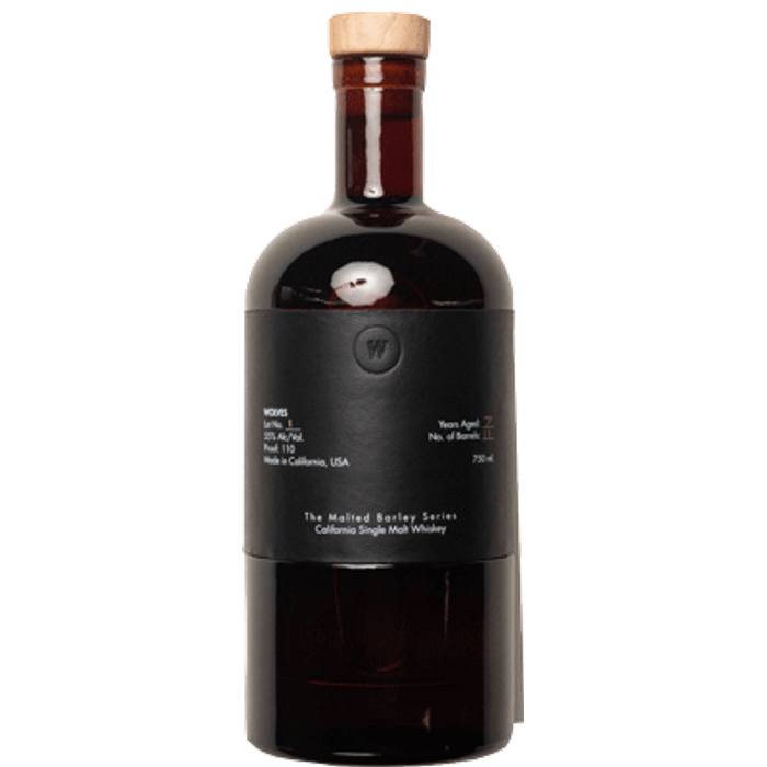 Wolves selected the 2015 lot for the initial release of the Malted Barley Series. It was distilled from two-row pale malted barley and employed a California Ale yeast in the fermentation process. This lot was not peated. This lot was chosen first because it is rich, different, and effortless to enjoy. On the nose, pleasant notes of maple syrup, orange, currant, vanilla, and honey. It boasts a velvet mouthfeel with notes of chocolate, port, stone fruit, and oats. It is impactful immediately upon hitting the palate.Wolves